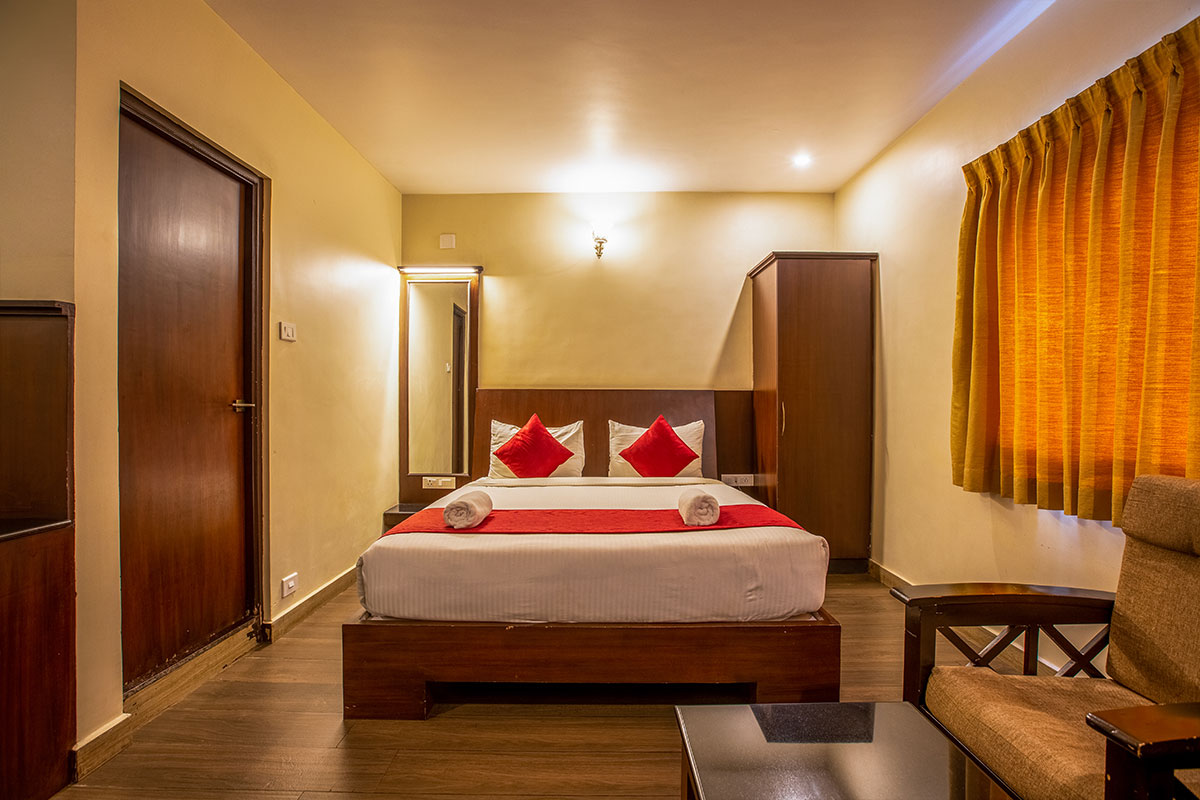 Adorned with exquisite settings and elegantly designed interiors, our Deluxe room has been crafted to offer you a sense of luxury living. With comfortable beds and a sitting area placed amidst a spacious living space, the room comes with a range of premium amenities catered to fulfil your essential needs. The room also comes with an attached bathroom equipped with essential toiletries and modern designs reflecting a sense of luxury. From premium wood furnishing to inviting ambience, these rooms are sure to offer you the best living experience.